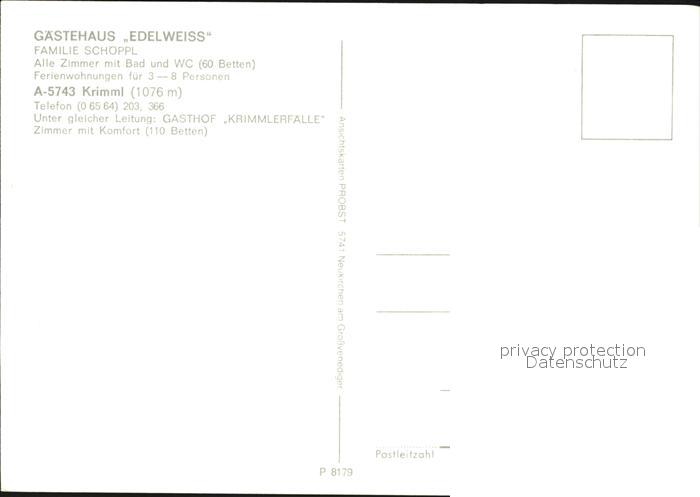 72470035 Krimml Gaestehaus Edelweiss mit Wasserfall postalisch nicht gelaufen Erhaltung siehe scans KatCode: 11390322050607