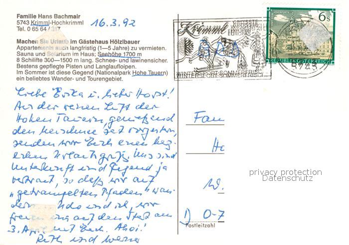 13008206 alte Postkarte Krimml Gaestehaus Hoelzlbauer postalisch gelaufen Erhaltung siehe scans [NatalD47] KatCode: 11390322050607