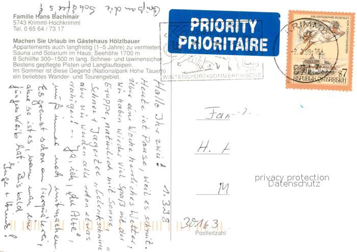 73513486 alte Postkarte Krimml Gaestehaus Hoelzlbauer postalisch gelaufen Erhaltung siehe scans [KathaD81] KatCode: 11390322050607