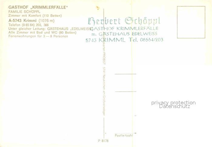 72661998 Krimml Gasthaus Krimmlerfaelle postalisch nicht gelaufen Erhaltung siehe scans [AndreD76] KatCode: 11390322050607