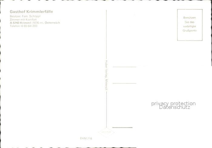 72181105 Krimml Gasthof Kirmmlerfaelle postalisch nicht gelaufen Erhaltung siehe scans KatCode: 11390322050607