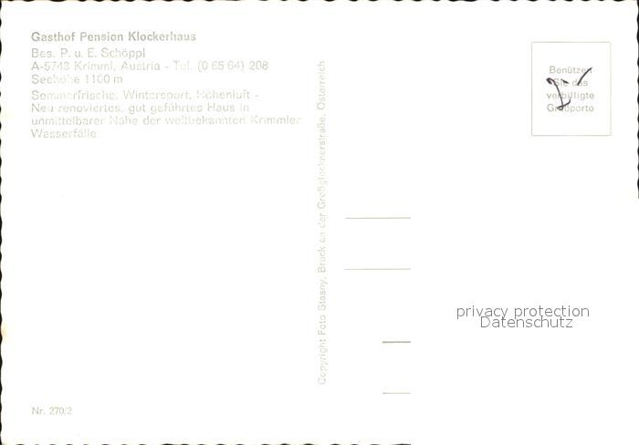 72501163 Krimml Gasthof Klockerhaus postalisch nicht gelaufen Erhaltung siehe scans KatCode: 11390322050607
