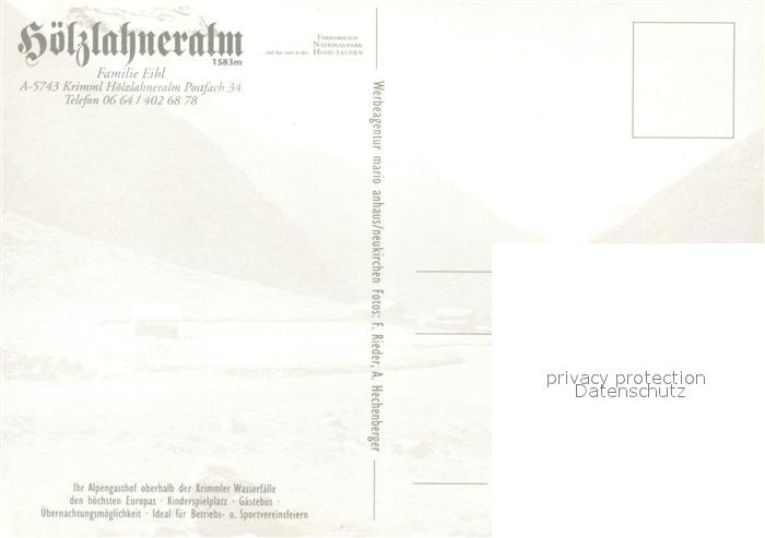 73323753 Krimml Hoelzlahneralm postalisch nicht gelaufen Erhaltung siehe scans [WerneD78] KatCode: 11390322050607