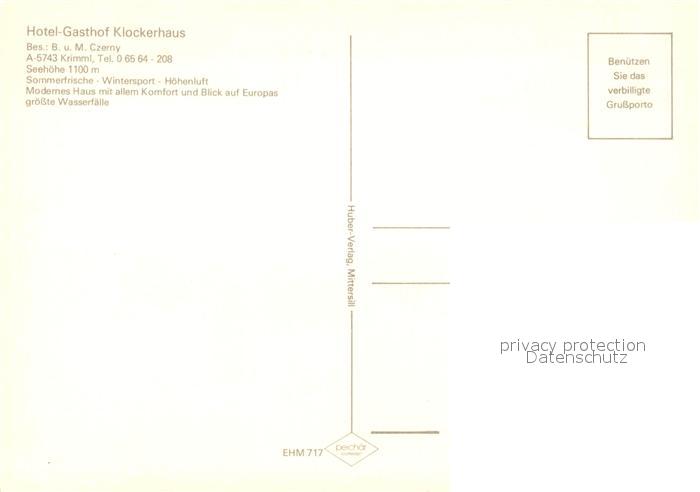 73518938 Krimml Hotel Gasthof Klockerhaus Sommerfrische Wintersport Alpen postalisch nicht gelaufen Erhaltung siehe scans [FriedD77] KatCode: 11390322050607
