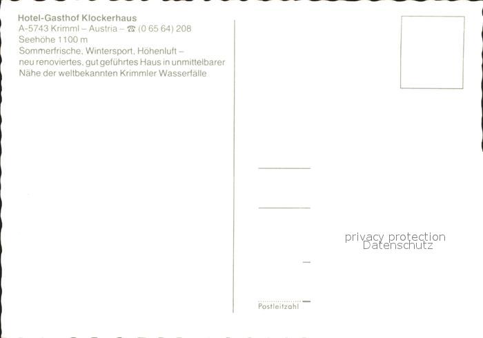42923849 Krimml Hotel Gasthof Klocknerhaus postalisch nicht gelaufen Erhaltung siehe scans [WerneD48] KatCode: 11390322050607