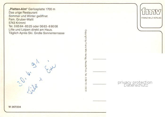 73765854 Krimml Platten Alm Gastraeume Sonnenterrasse postalisch nicht gelaufen Erhaltung siehe scans [WerneD78] KatCode: 11390322050607