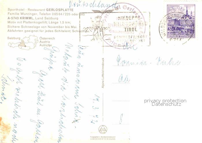 72626782 alte Postkarte Krimml Sporthotel Gerlosplatte Plattenkogellift Wintersportplatz Alpen Fliegeraufnahme postalisch gelaufen Erhaltung siehe scans [FriedD77] KatCode: 11390322050607