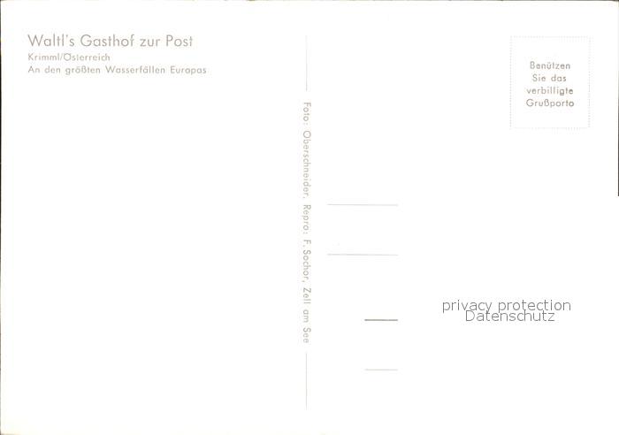 12342704 Krimml WaltL s Gasthof zur Post postalisch nicht gelaufen Erhaltung siehe scans KatCode: 11390322050607