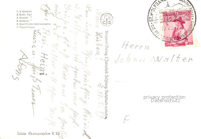 73027909 alte Postkarte Krimml Wasserfaelle Sporthotel Gerlosplatte Tauernhaus postalisch gelaufen Erhaltung siehe scans [PaolaD17] KatCode: 11390322050607