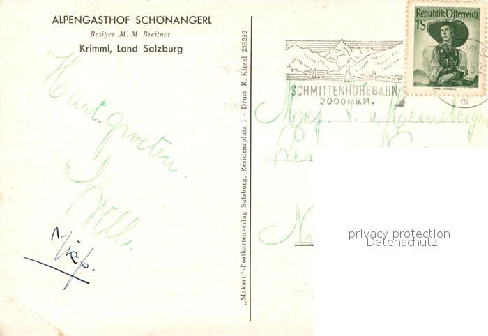 73519818 alte Postkarte Krimmler Wasserfaelle Alpengasthof Schoenangerl postalisch gelaufen Erhaltung siehe scans [WerneD78] KatCode: 11390323050101