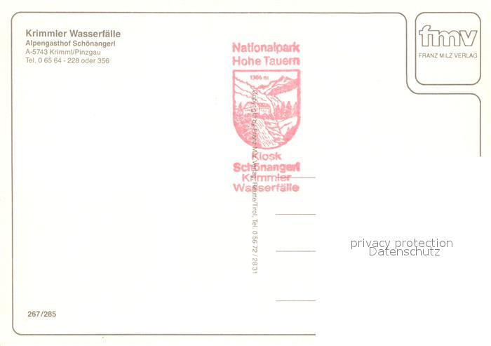 73168746 Krimmler Wasserfaelle Gasthof Schoenangerl postalisch nicht gelaufen Erhaltung siehe scans [KathaD81] KatCode: 11390323050101