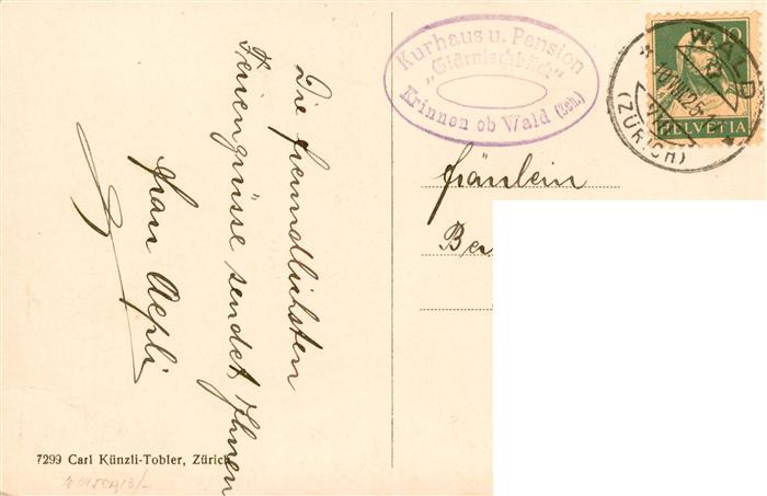 13959254 alte Postkarte Krinnen Wald ZH Panorama Blick gegen Speer und Muertschenstock Pension Glaernischblick postalisch gelaufen Erhaltung siehe scans [FriedD77] KatCode: 11470260885306