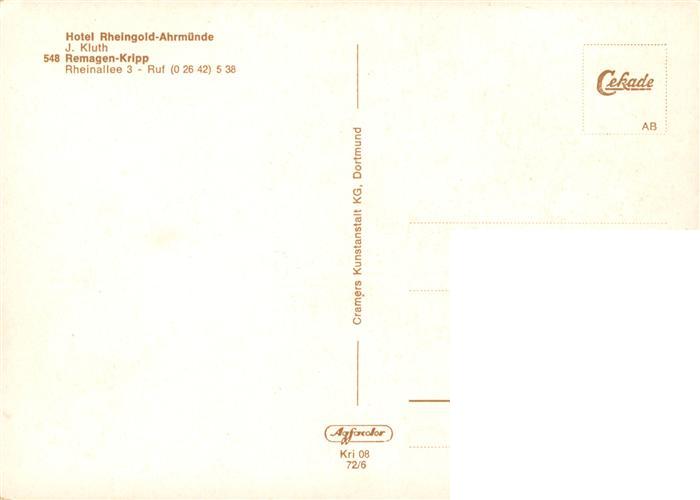 73881401 Kripp Bad Hotel Rheingold Ahrmuende Rezeption postalisch nicht gelaufen Erhaltung siehe scans [FriedD77] KatCode: 11110007131070