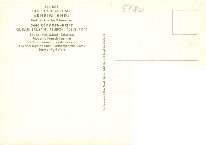 73897027 Kripp Bad Hotel und Gasthaus Rhein Ahr Gastraeume postalisch nicht gelaufen Erhaltung siehe scans [FriedD77] KatCode: 11110007131070