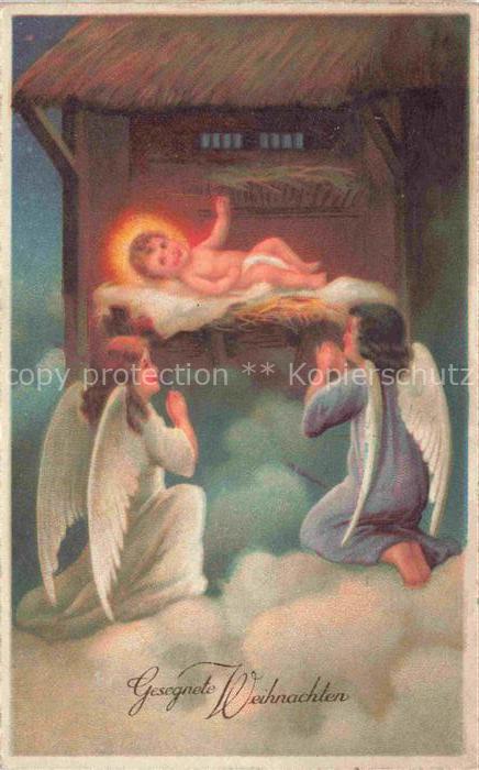 74089115 alte Postkarte Krippe Weihnachtskrippe Crib Copier Weihnachten Engel postalisch gelaufen Erhaltung siehe scans [SanaeD93] KatCode: 22460000000600