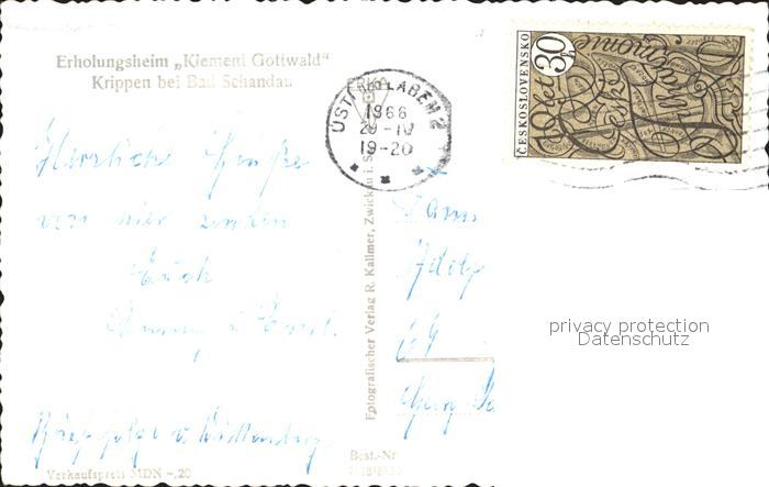 72091465 alte Postkarte Krippen Bad Schandau Erholunsheim Klement Gottwald postalisch gelaufen Erhaltung siehe scans KatCode: 11110014287020