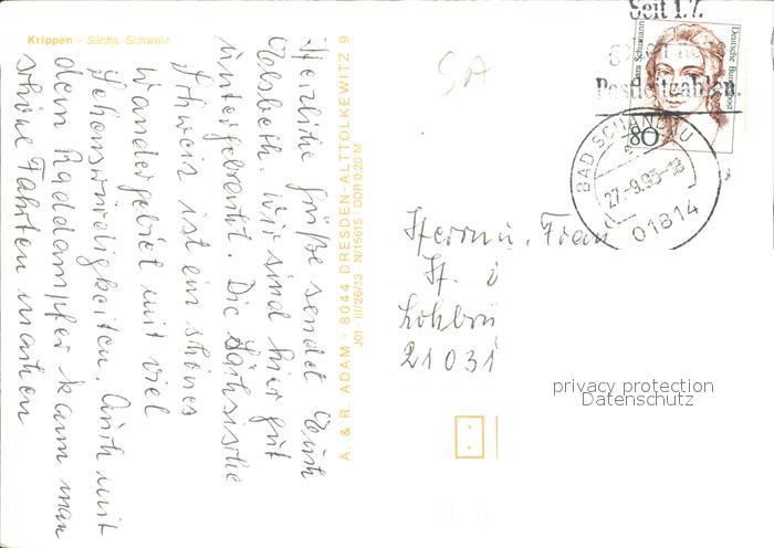 71935033 alte Postkarte Krippen Bad Schandau Ortsblick Ausflugsschiff postalisch gelaufen Erhaltung siehe scans KatCode: 11110014287020