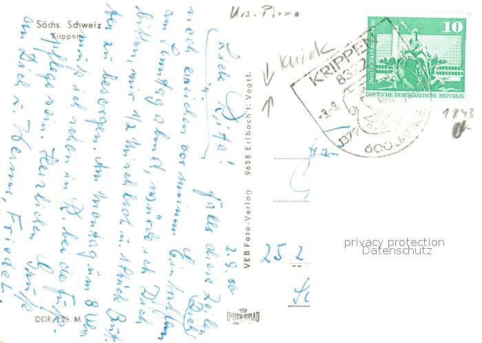 73571447 alte Postkarte Krippen Bad Schandau Panorama postalisch gelaufen Erhaltung siehe scans [WerneD78] KatCode: 11110014287020