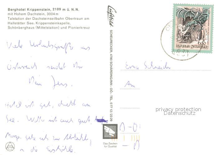 73232887 alte Postkarte Krippenstein Berghotel Seilbahn postalisch gelaufen Erhaltung siehe scans [LiesaD40] KatCode: 11390222061236
