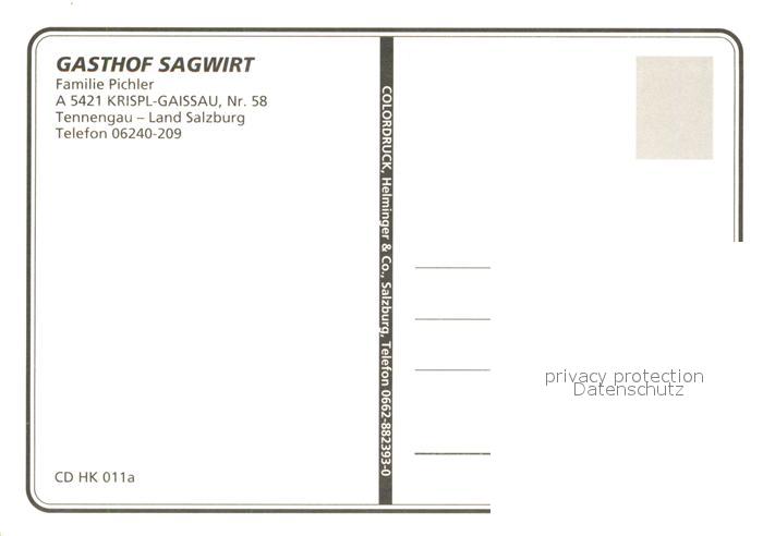 73614125 Krispl Gaissau Gasthof Sagwirt postalisch nicht gelaufen Erhaltung siehe scans [WerneD78] KatCode: 11390323050206