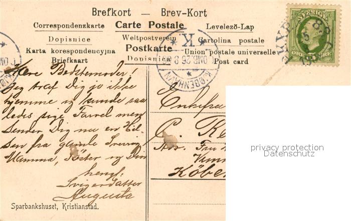 old postcard Kristianstad Sparkbankhuset postalisch gelaufen Erhaltung siehe scans [LiesaD40]