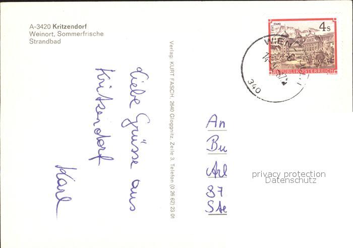 72229383 alte Postkarte Kritzendorf Strandbad Kirche postalisch gelaufen Erhaltung siehe scans KatCode: 11390