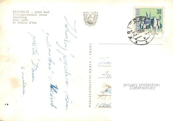 old postcard Krivoklat Statni Hrad postalisch gelaufen Erhaltung siehe scans [LiesaD40]