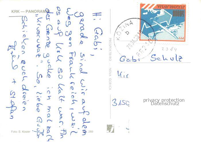 74040358 old postcard Krk Otok Krk Croatia Kuestenort postalisch gelaufen Fliegeraufnahme Erhaltung siehe scans [FriedD77] KatCode: 11260