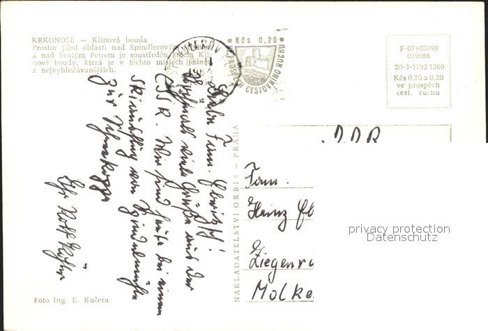 12366242 old postcard Krkonose postalisch gelaufen Erhaltung siehe scans KatCode: 11410