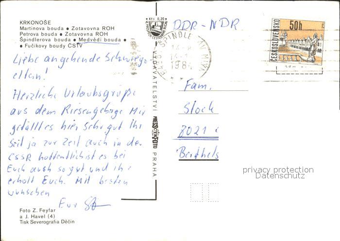 old postcard Krkonose postalisch gelaufen Erhaltung siehe scans