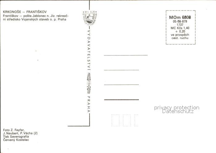 Krkonose Frantiskov posta Jablonec n Jiz rekreacni stredisko Vojenskych staveb op Praha postalisch nicht gelaufen Erhaltung siehe scans
