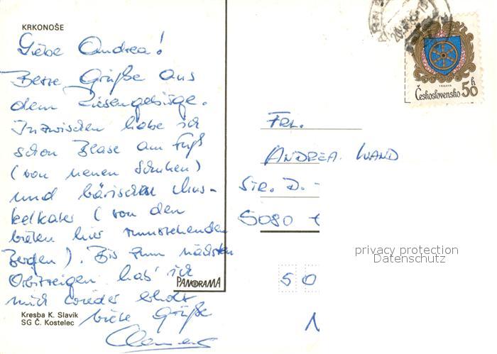 73280581 old postcard Krkonose Gebietskarte postalisch gelaufen Erhaltung siehe scans [WerneD78] KatCode: 11410