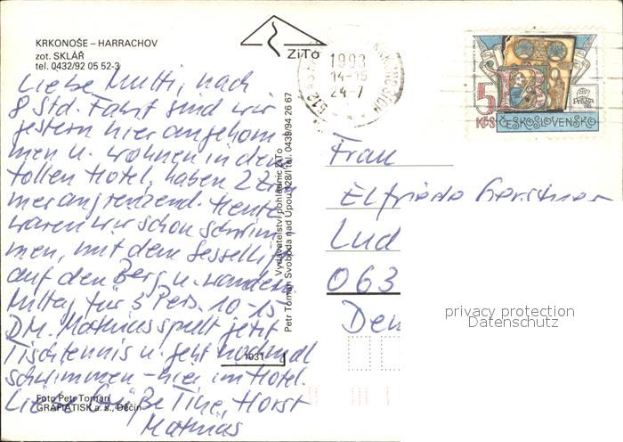 old postcard Krkonose Harrachov postalisch gelaufen Erhaltung siehe scans