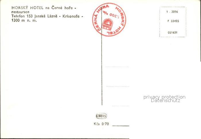 Krkonose Horsky Hotel na Cerne hore restaurace postalisch nicht gelaufen Erhaltung siehe scans