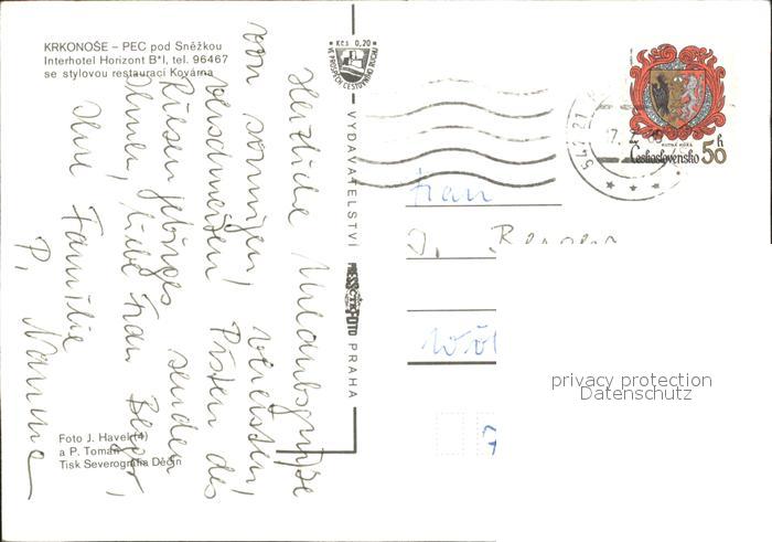 old postcard Krkonose Hotel Horizont postalisch gelaufen Erhaltung siehe scans