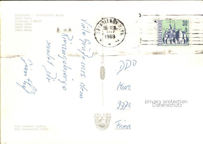 old postcard Krkonose Hotel Savoy postalisch gelaufen Erhaltung siehe scans