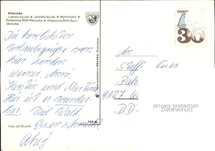 old postcard Krkonose Hrebenove Boudy postalisch gelaufen Erhaltung siehe scans