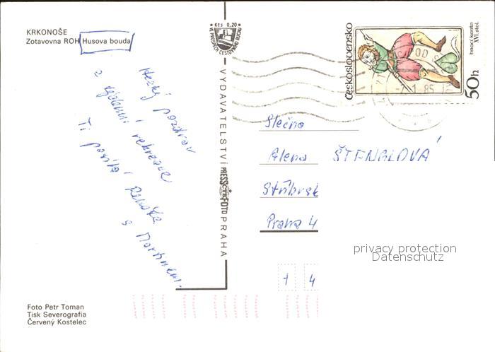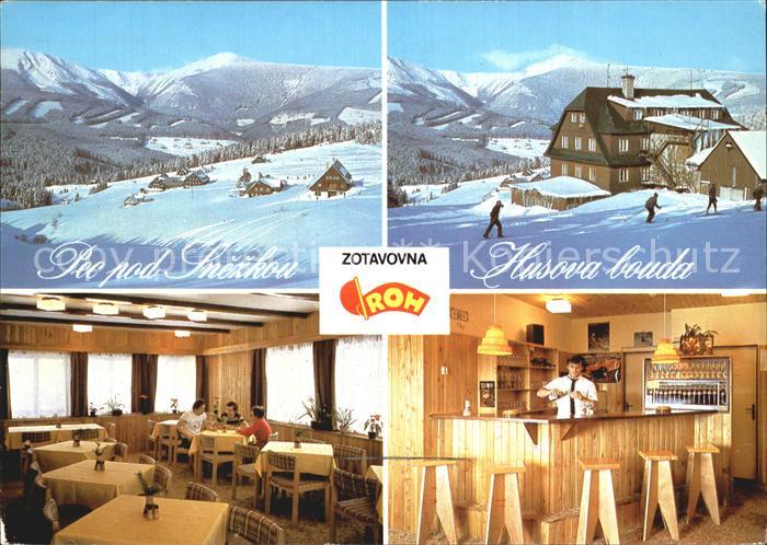 old postcard Krkonose Husova bouda Gastraum Bar postalisch gelaufen Erhaltung siehe scans
