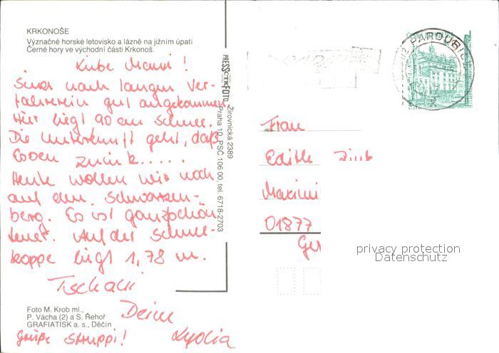 old postcard Krkonose Janske Lazne Seilbahn postalisch gelaufen Erhaltung siehe scans