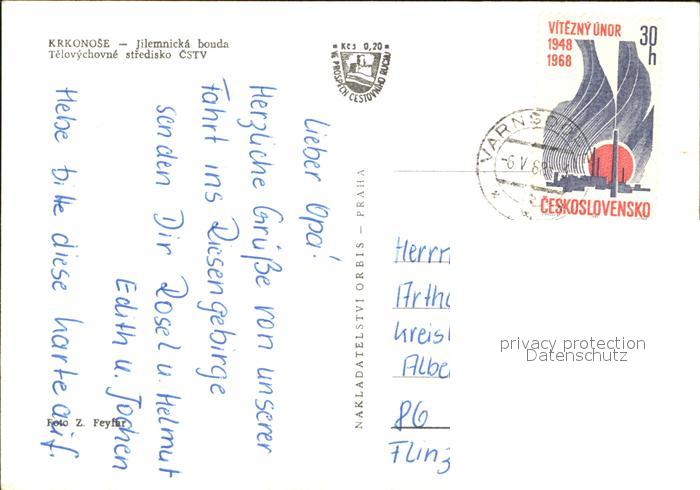 old postcard Krkonose Jilemnicka Bouda postalisch gelaufen Erhaltung siehe scans