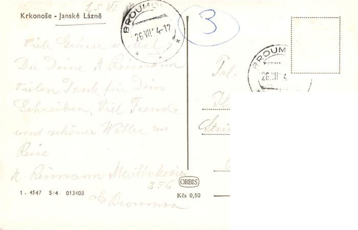 old postcard Krkonose Karkonosze Riesengebirge Janske Lazne postalisch gelaufen Erhaltung siehe scans [WerneD78]