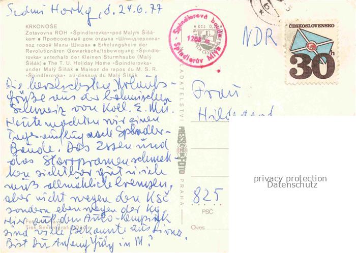 74088031 old postcard Krkonose Karkonosze Riesengebirge Zotavovna ROH Spinderovka pod Malym Sisakem postalisch gelaufen Erhaltung siehe scans [WerneD78] KatCode: 11520