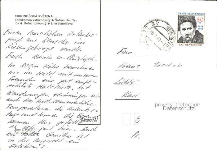 old postcard Krkonose Krkonosska Kvetena Bluetezeit Narodnipark postalisch gelaufen Erhaltung siehe scans