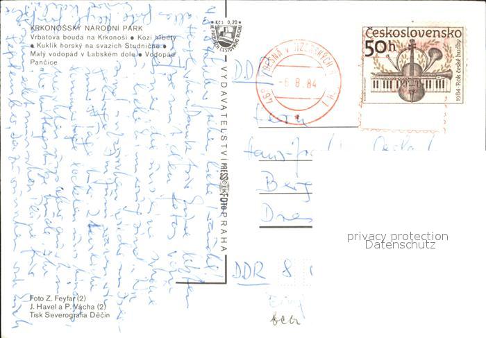 old postcard Krkonose Krkonossky Narodni Park Vodopad Pancice Kuklik horsky postalisch gelaufen Erhaltung siehe scans