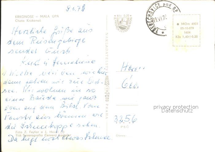old postcard Krkonose Maly Upa Chata Krakonos postalisch gelaufen Erhaltung siehe scans