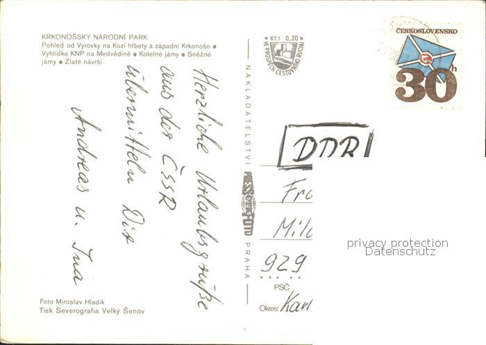 old postcard Krkonose Narodni Park postalisch gelaufen Erhaltung siehe scans