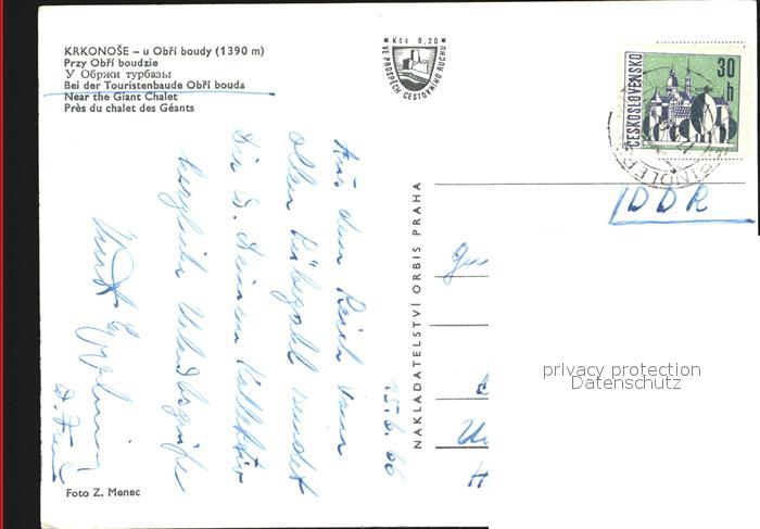 old postcard Krkonose Obri Bouda postalisch gelaufen Erhaltung siehe scans