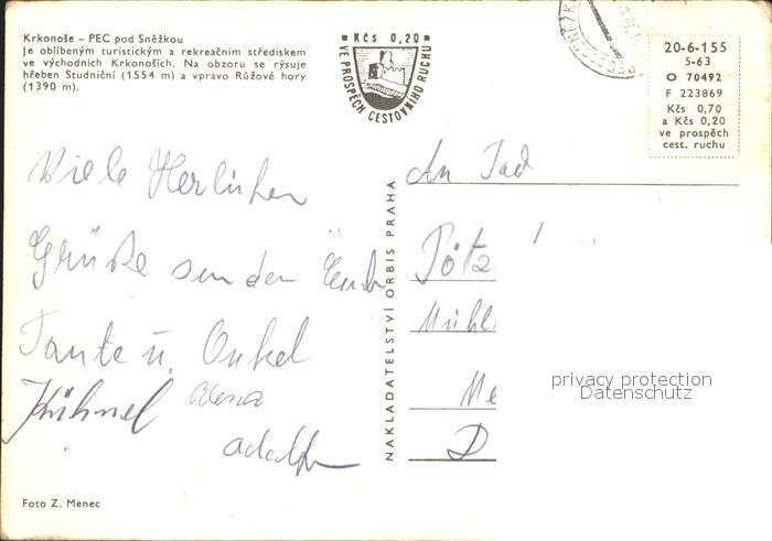 12378001 old postcard Krkonose PEC pod Snezkau postalisch gelaufen Erhaltung siehe scans KatCode: 11410