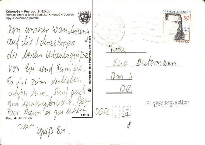 old postcard Krkonose Pec pod Snezkou postalisch gelaufen Erhaltung siehe scans
