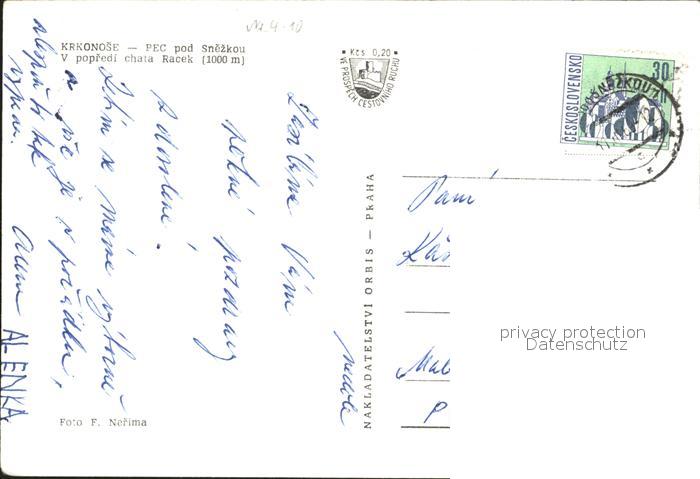 old postcard Krkonose Pec pod Snezkou popredi chata Racek postalisch gelaufen Erhaltung siehe scans